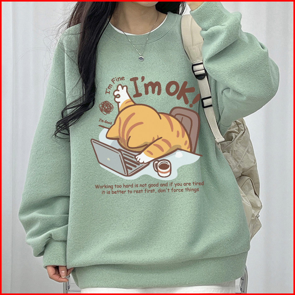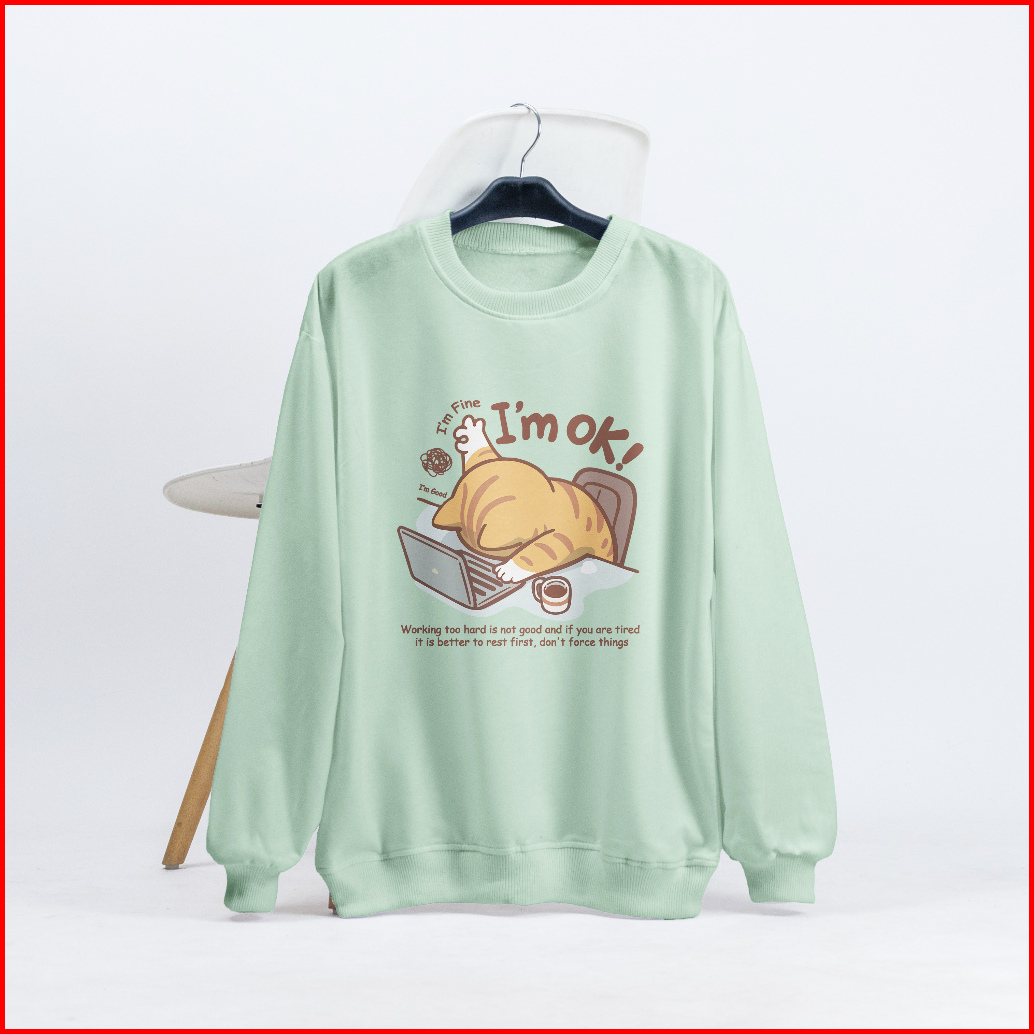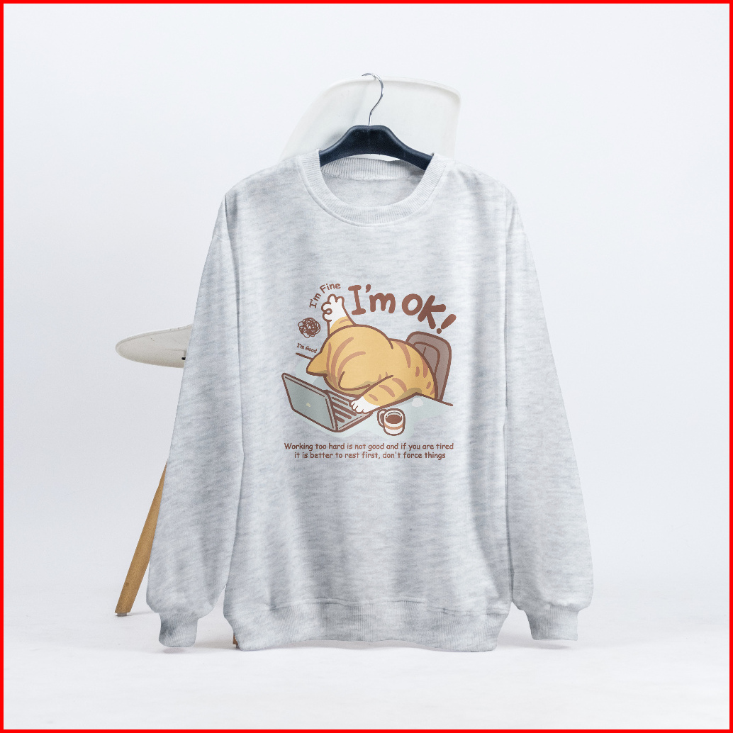 Tf - I M Ok Cute Cat Sweater Wanita Korean Style Sweatshirt Baju Remaja Dewasa Kekinian Terbaru