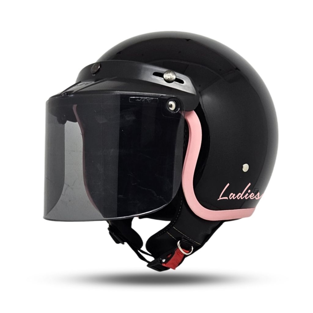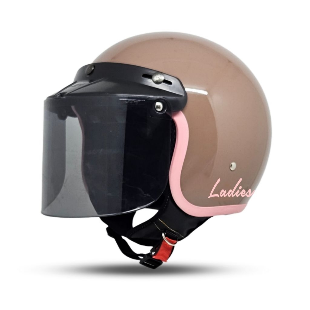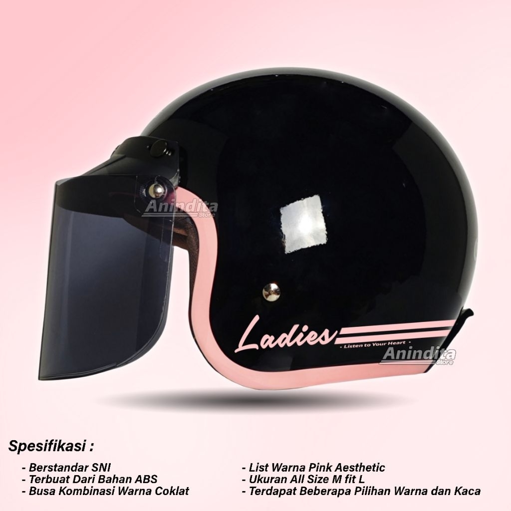 Helm Bogo Retro Wanita Hijab Ladies List Pink Full Leher SNI DEWASA