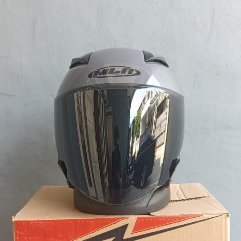 Mla J5 Grey Glossy Helm Half face original Sni Pria & Wanita