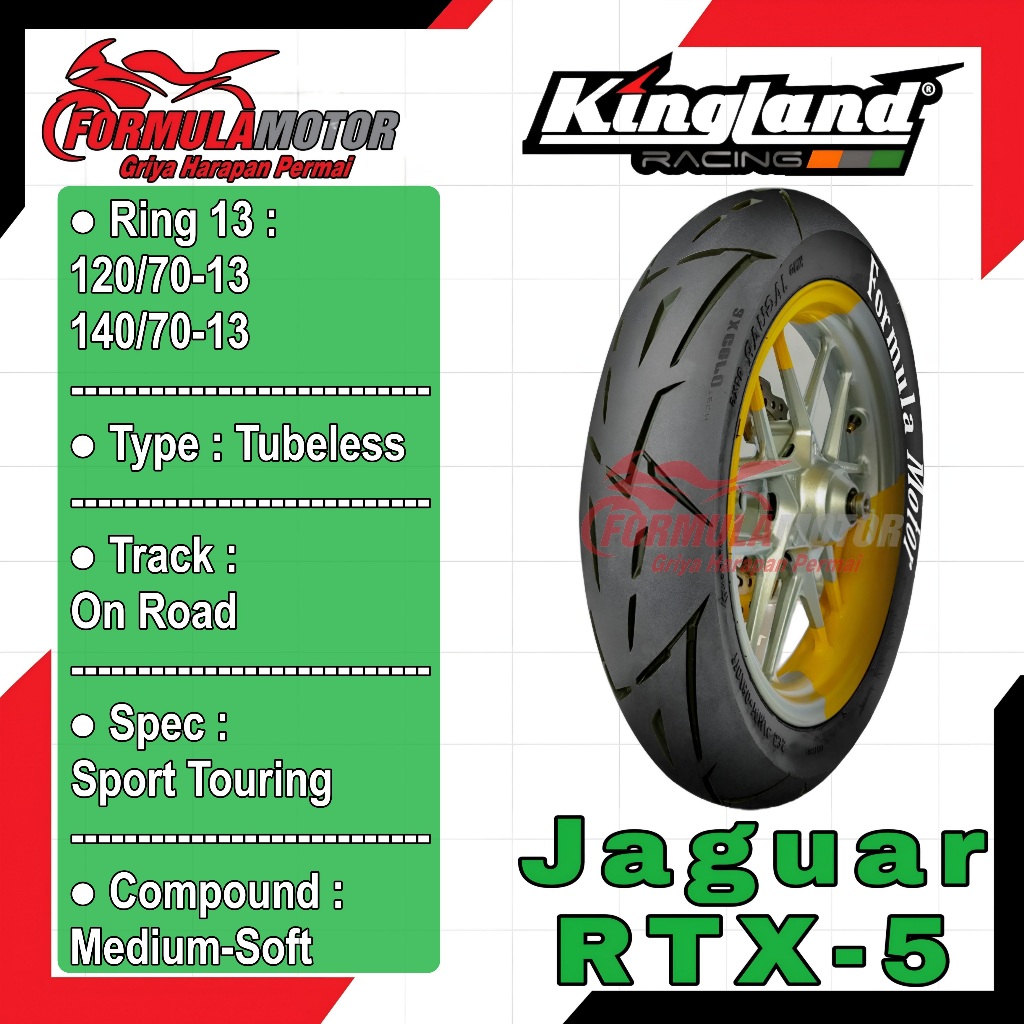 Kingland Jaguar RTX-5 Ring 13 Tubeless All Size - Ban Tubles Motor NMAX, ADV, PCX-160 (Ukuran 120/70-13, 140/70-13)