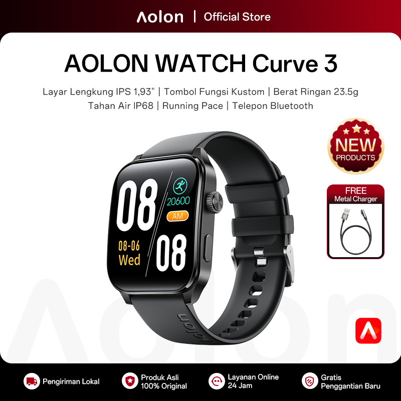 [New] Aolon Curve 3 Jam Smartwatch 1.93-inci Layar IPS Tombol Kustom Telepon Bluetooth Pemantauan Tidur Tahan Air IP68 Berat 22g