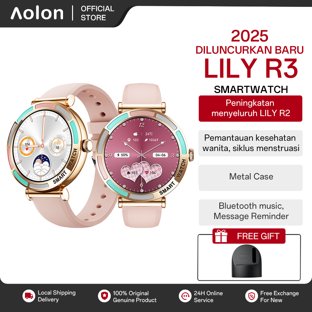 [2025 Baru] Aolon Lily R2 R3 Smartwatch Wanita Original 41mm Bulat Kesehatan Wanita Smart Watch GT 6 Lily R3 Waterproof