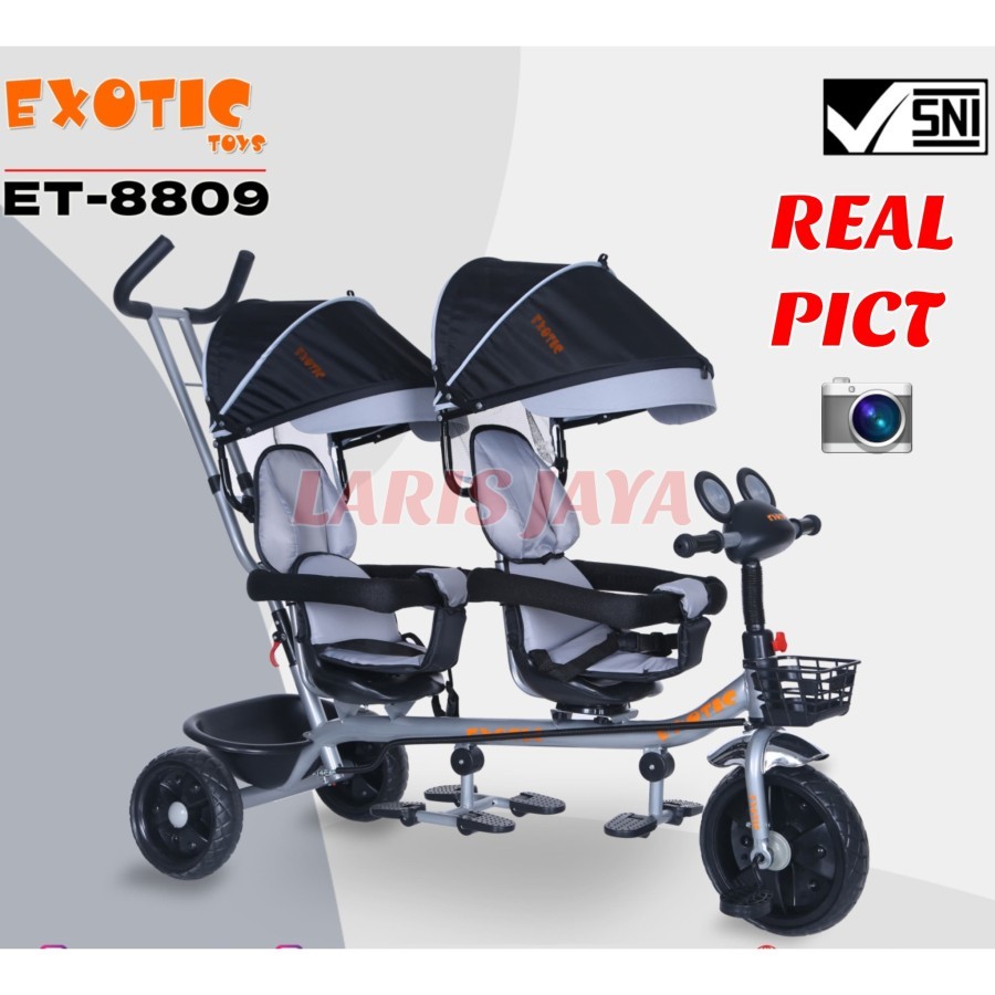 Tricycle kembar sepeda roda tiga double seater 8809 kembar twins exotic by pacific bike high quality boncengan dan musik usia anak 1-5 tahun sni new