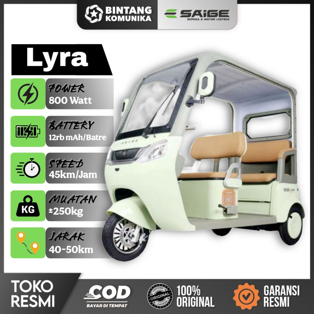 Sepeda Listrik Roda 3 | roda Tiga Saige Lyra 800 watt new 2025