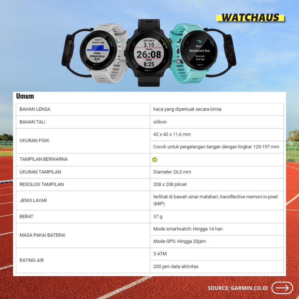 JAM TANGAN SMARTWATCH GARMIN FORERUNNER 55 ORIGINAL BERGARANSI RESMI 2 TAHUN
