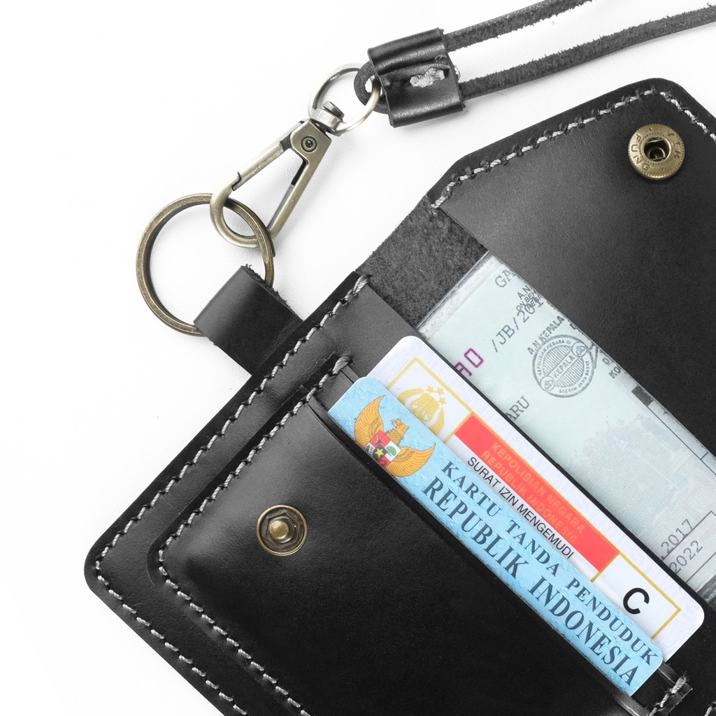 Dompet Kartu Simpel Kulit Asli Dengan Tali Leher Hanging Wallet Model Kancing