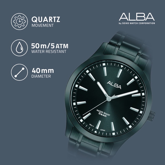 Alba Prestige Jam Tangan Pria ARX005 / ARX005X1 Quartz Black Dial Stainless Steel Strap Watch