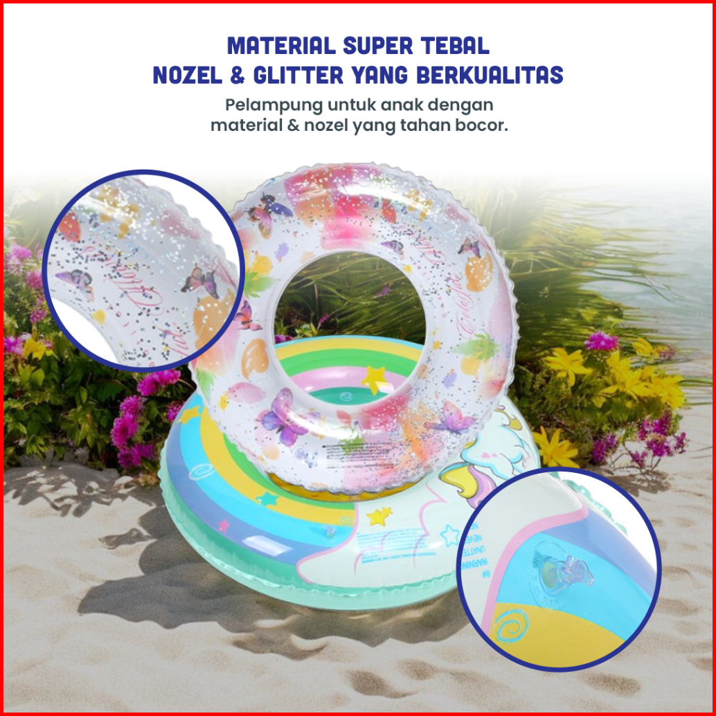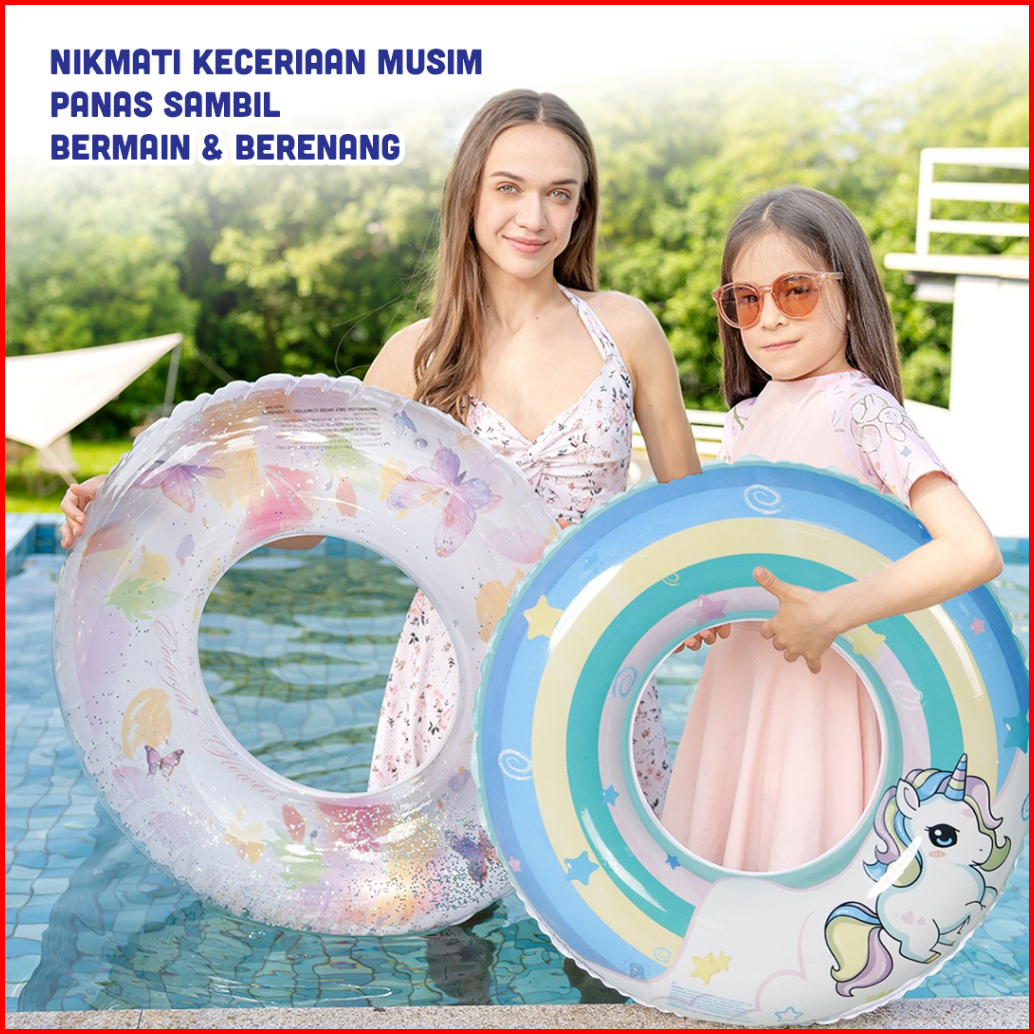Floatisca Pelampung Ban Renang Anak Motif Hewan Butterfly Rainbow Pony Pvc Swimming Safety Ring