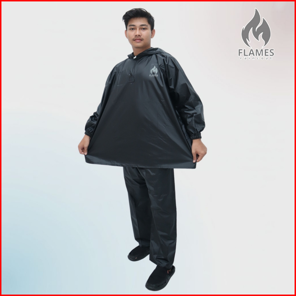 Flames Jas Hujan Raincoat Model Hoodie Setelan Celana Bahan Pvc Premium Lentur Elastis Anti Rembes
