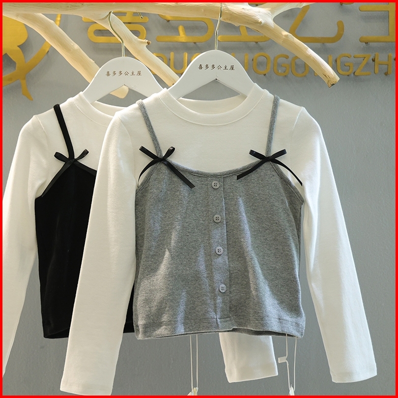 Anak Perempuan Kemeja Lengan Panjang Dekorasi Busur Korea 2-10 Tahun