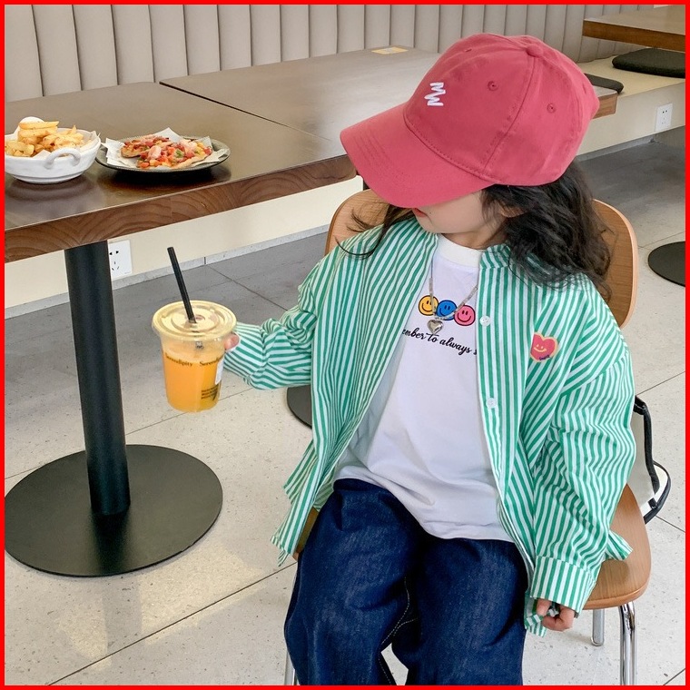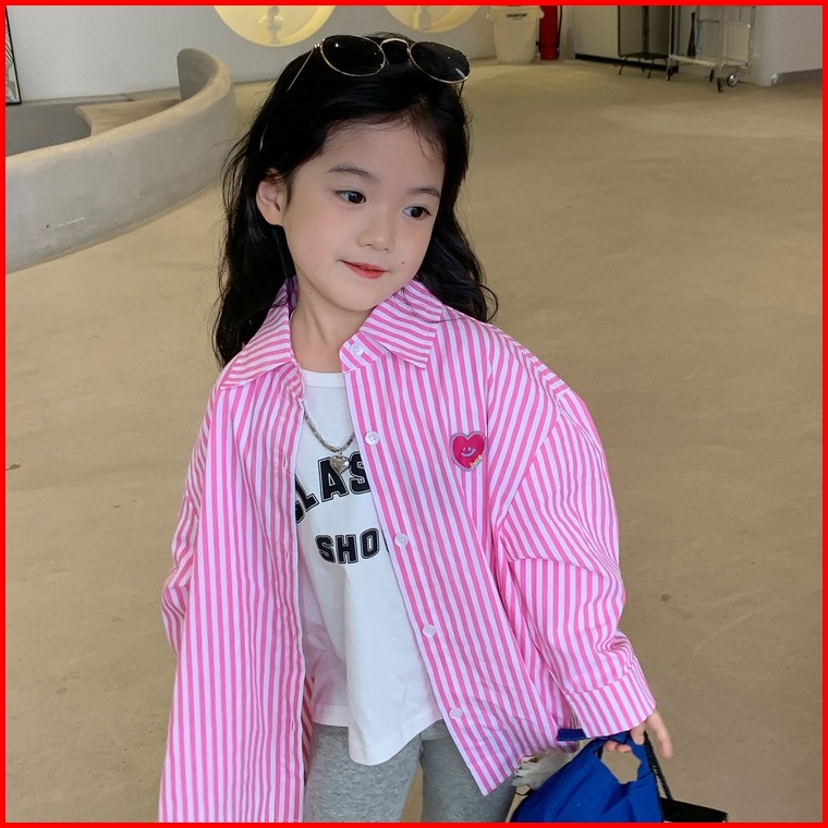 Princess Kesli 2-11 Tahun Tshirt Anak Perempuan Kardigan Bergaris Kartun Atasan Kasual Gaya Korea