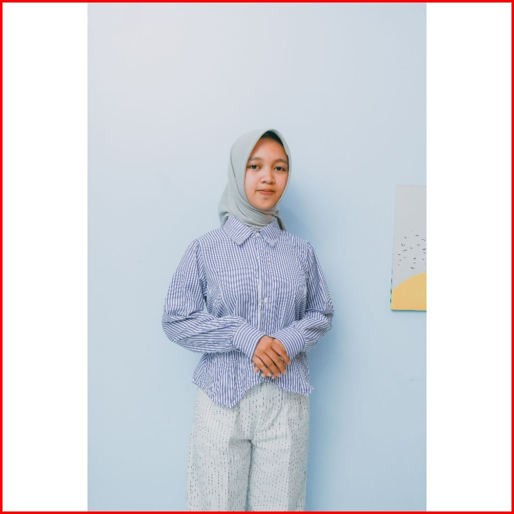 Naomi Salur Couple Ibu Dan Anak Perempuan Kemeja Blouse Couple Motif Salur Bahan Katun