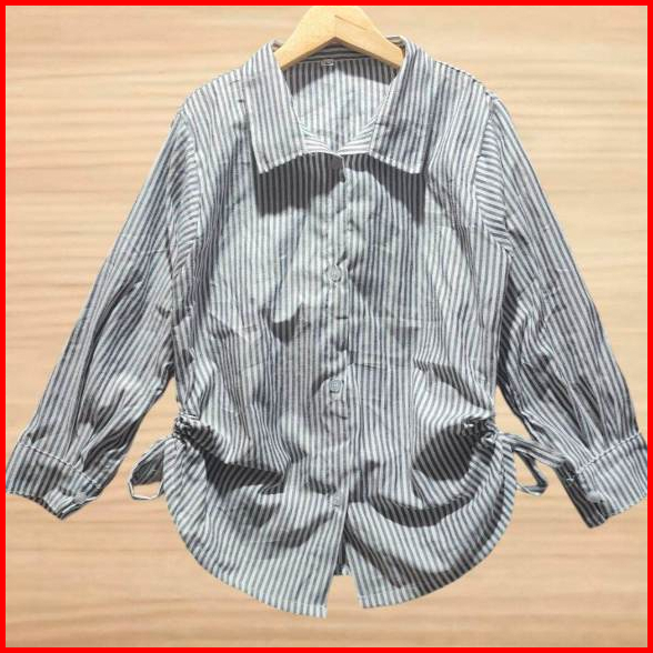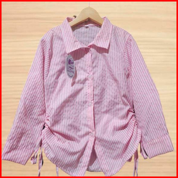 Kemeja Blouse Anak Stripe Perempuan Umur 3-14 Tahun Lengan Panjang Hem Salur Serut Bawah Bahan Katun Salur Usia 4-14th