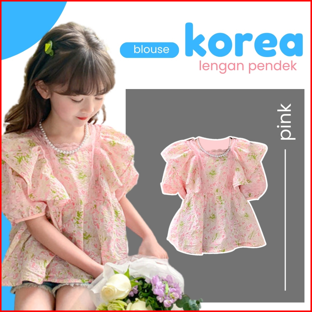 Hoobaby 1-9tahun Daisy Flower Blouse Baju Anak Perempuan Korea Style Lengan Pendek Gadis Cute Nyaman