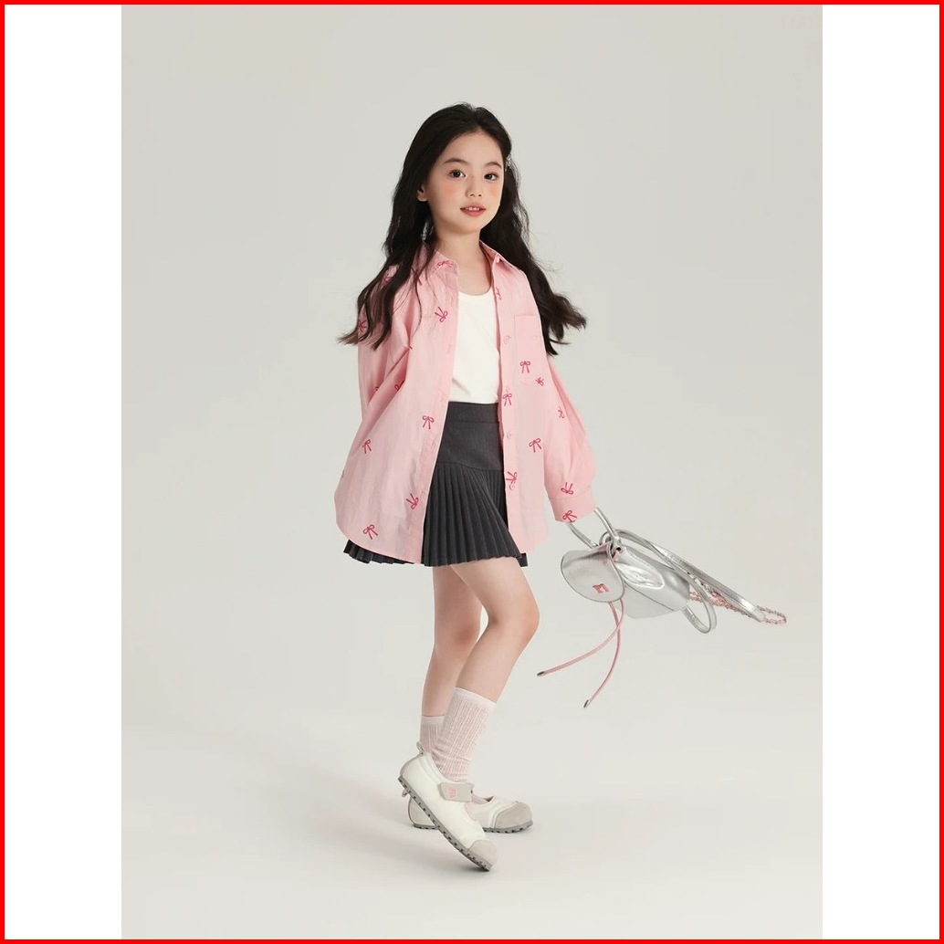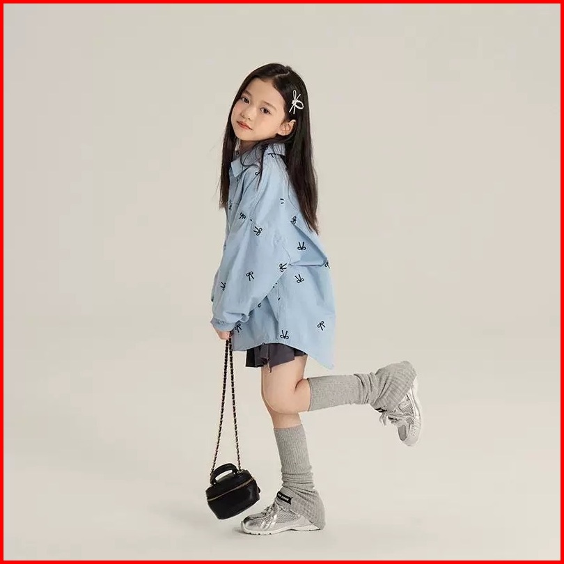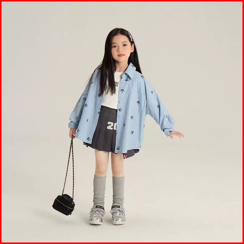 Happy Baby2-12 Tahun Atasan Kemeja Oversize Motif Pita Kecil Korean Style Anak Perempuan Elegant Kualitas Premium Cs-09