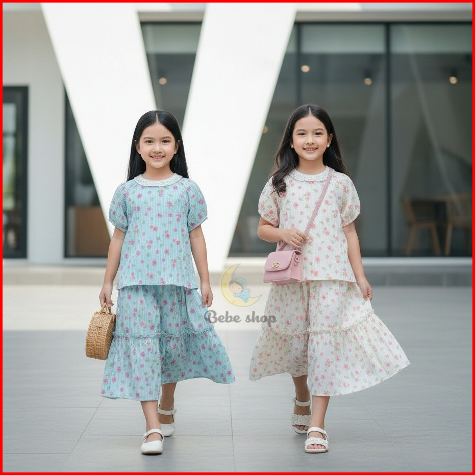 Setelan Rok Bunga Sakura Bahan Cringkle Erora Usia 1 Sampai 10 Tahun Banyak Pilihan Warna