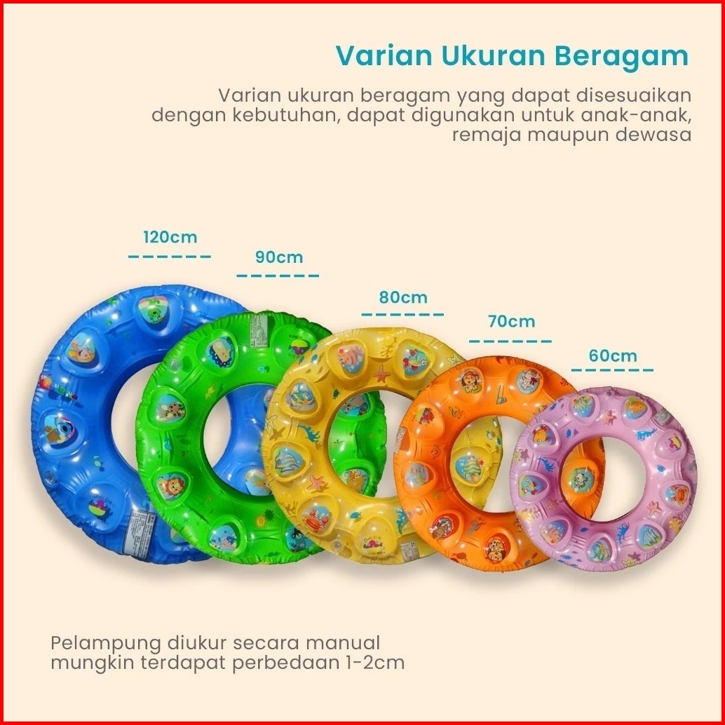Xin Yue Pelampung Ban Renang Anak Motif Timbul Hewan Kartun Swim Ring Pool 70 Cm