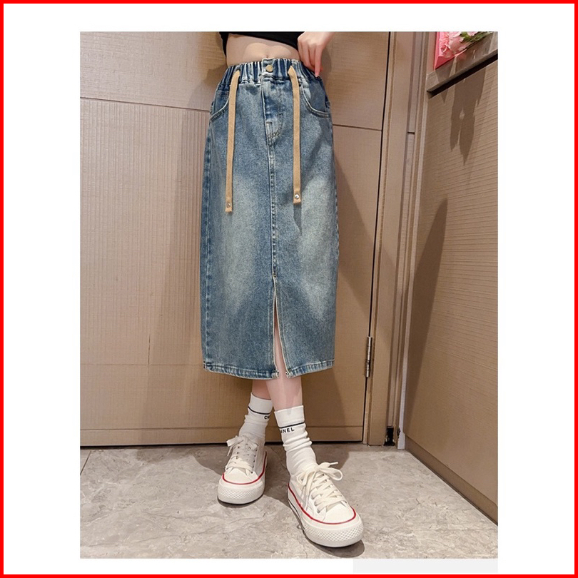 New Arrival Rok Jeans Anak Tanggung Perempuan Model Rok Belah Depan Usia 6-14 Tahun