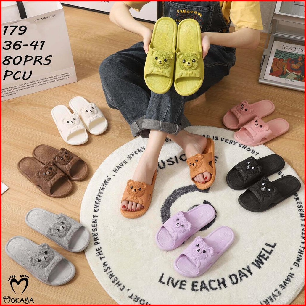 Haogos Sandal Rumah Slop Jelly Karet Pcu Motif Bear Timbul Import Laluna Mokaya Bm-179 Size 36-41