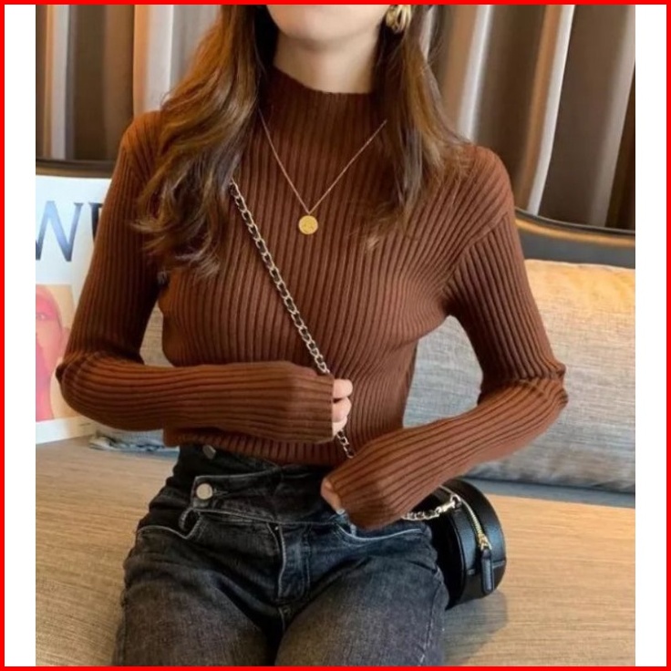 Inner Rajut Turtleneck Premium Lengan Panjang Atasan Rajut Wanita Terbaru