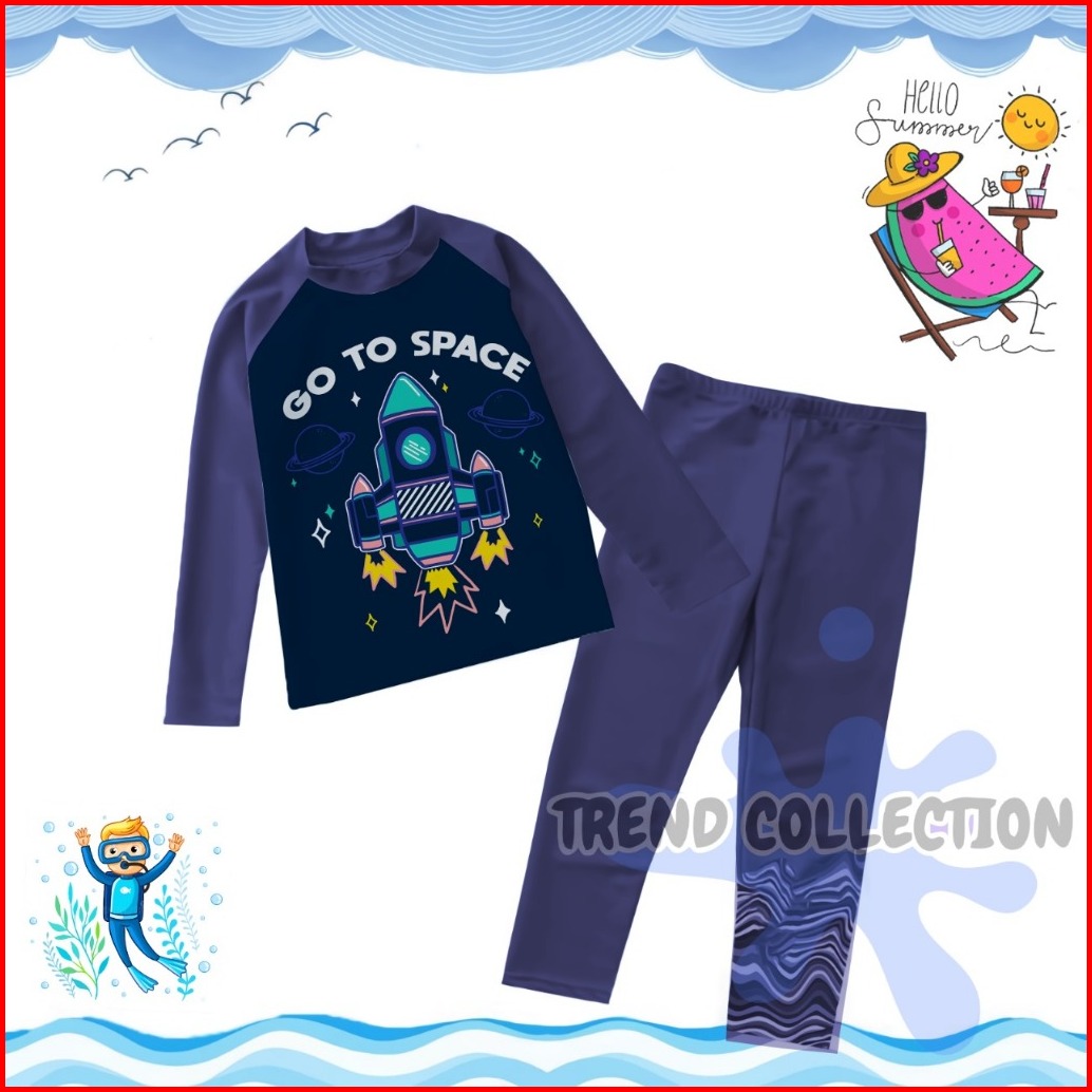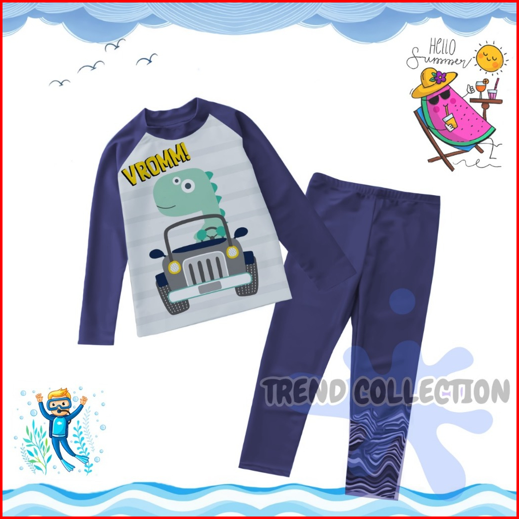 Baju Renang Anak Laki-laki Baju Renang Lengan Panjang Baju Renang Karakter Kombi Navy 1-8th