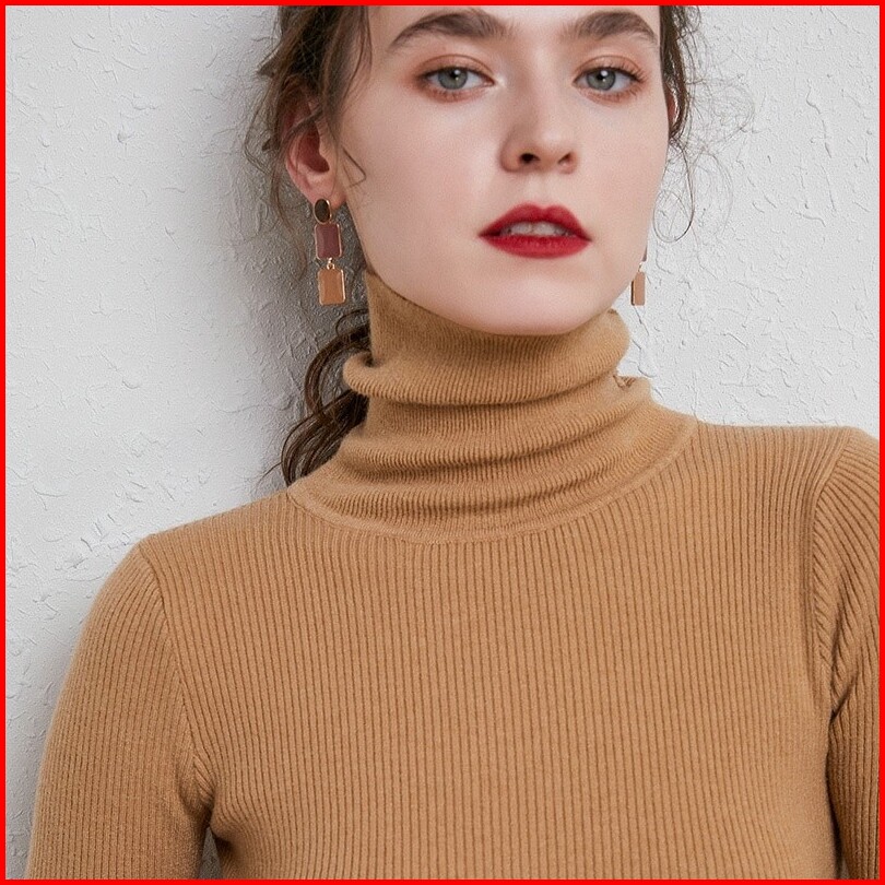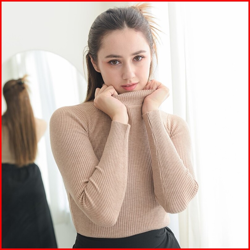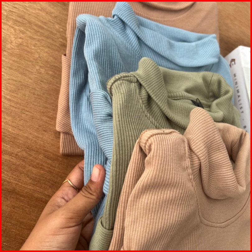Turtleneck Pria Dan Wanita Leher Tinggi Lengan Panjang Rib Rajut Polos Premium