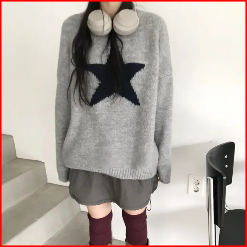 Starla Knite Sweater Wanita Korean Style Crewneck Knitted Atasan Rajut