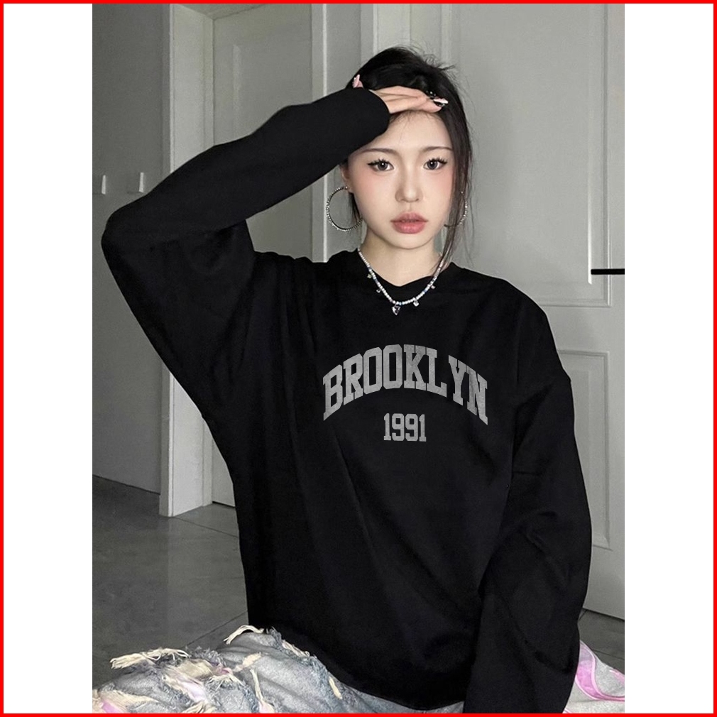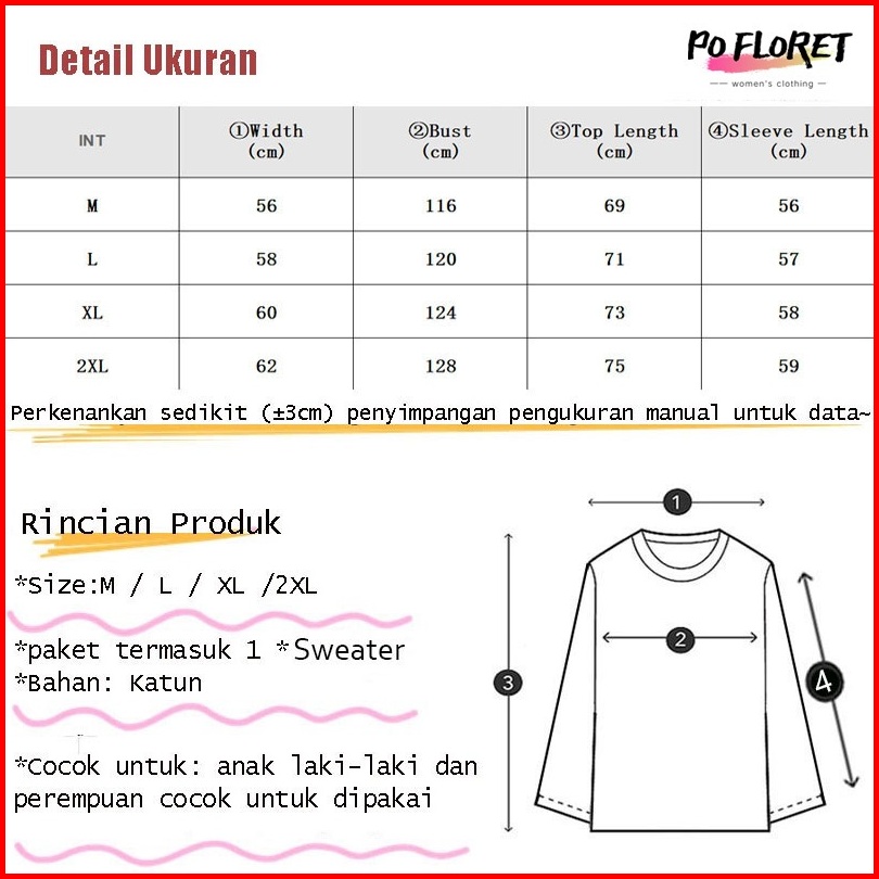 Po Floret Sweater Oversize Baju Kaos Katun Cetak Huruf Lengan Panjang Sweatshirts Katun Murni Wanita Top Switer Wanita K