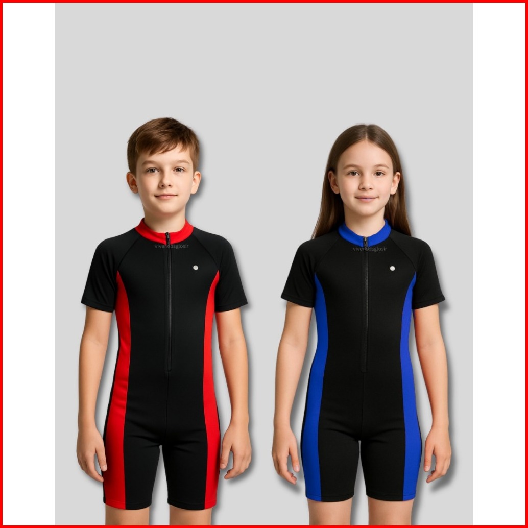 Baju Renang Anak Remaja Laki-laki Perempuan Model Diving Full Body Pendek Nyaman Elastis