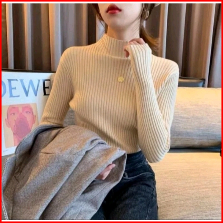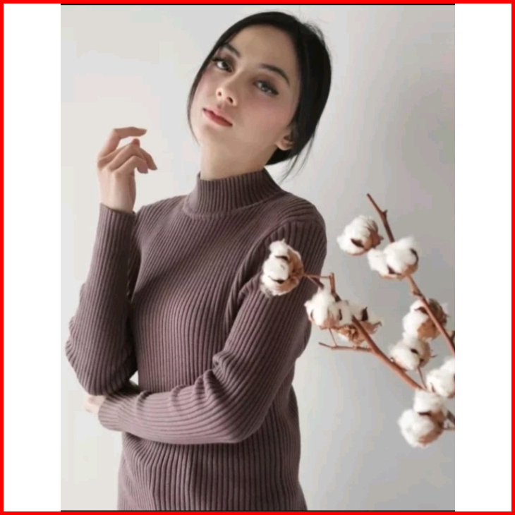 Aisah Inner Rajut Baju Dalaman Turtleneck Knit Manset Daysiy Salur Premium