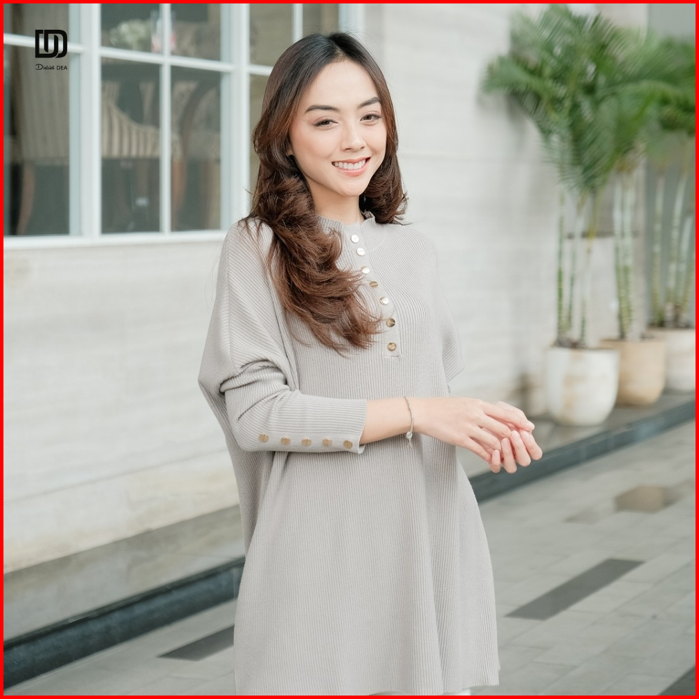 District Dea - Inara Batwing Knit - Atasan Rajut Lengan Panjang Model Batwing - Atasan Rajut Polos - Atasan Rajut Kancin