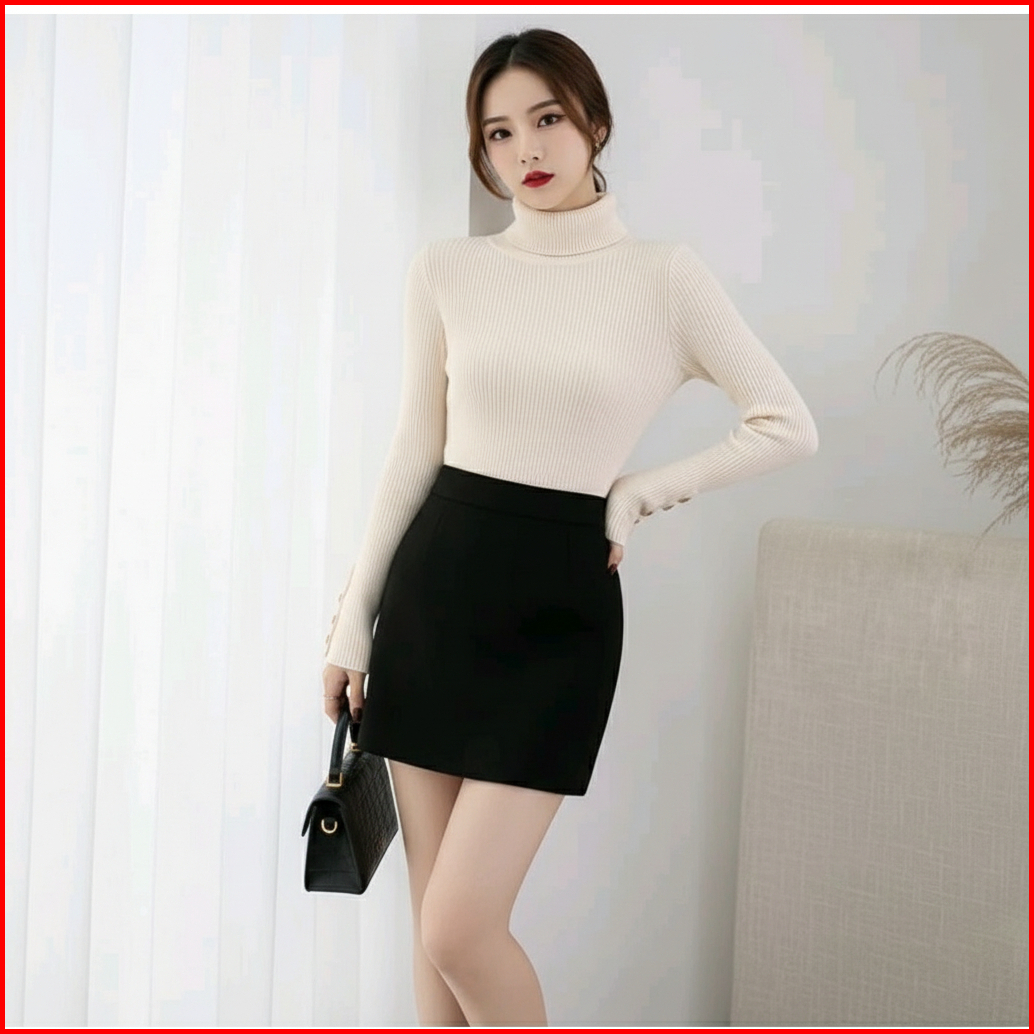 Gs - Atasan Manset Rajut Knit Button Turtle Neck Inner Inara Korean Style Kancing Inner Rajut Knitwear