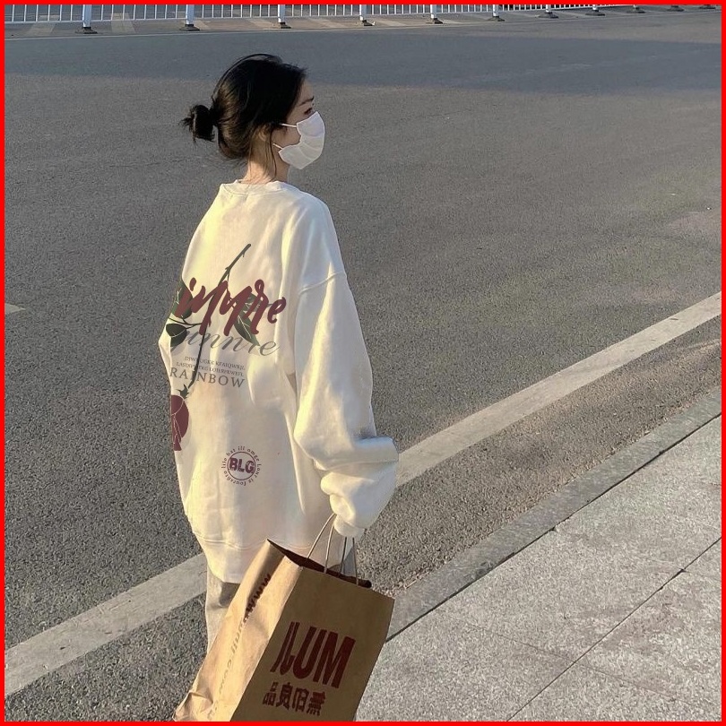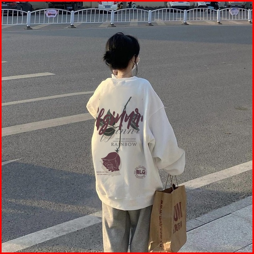 Eunii Sweater Putih Pola Mawar Sweater Lengan Panjang Model Versi Korea Pakaian Wanita Sweater Wanita Switer Oversize