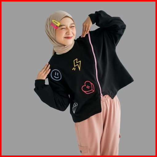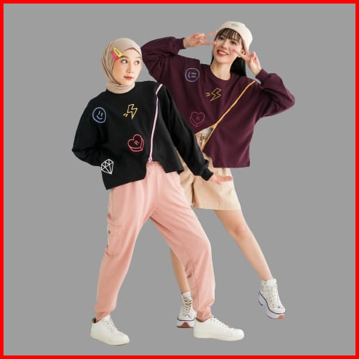 Lexy Crop Sweater Wanita Oversize Korean Style - Sweater Wanita Sweatshirt Kekinian Lucu Terbaru