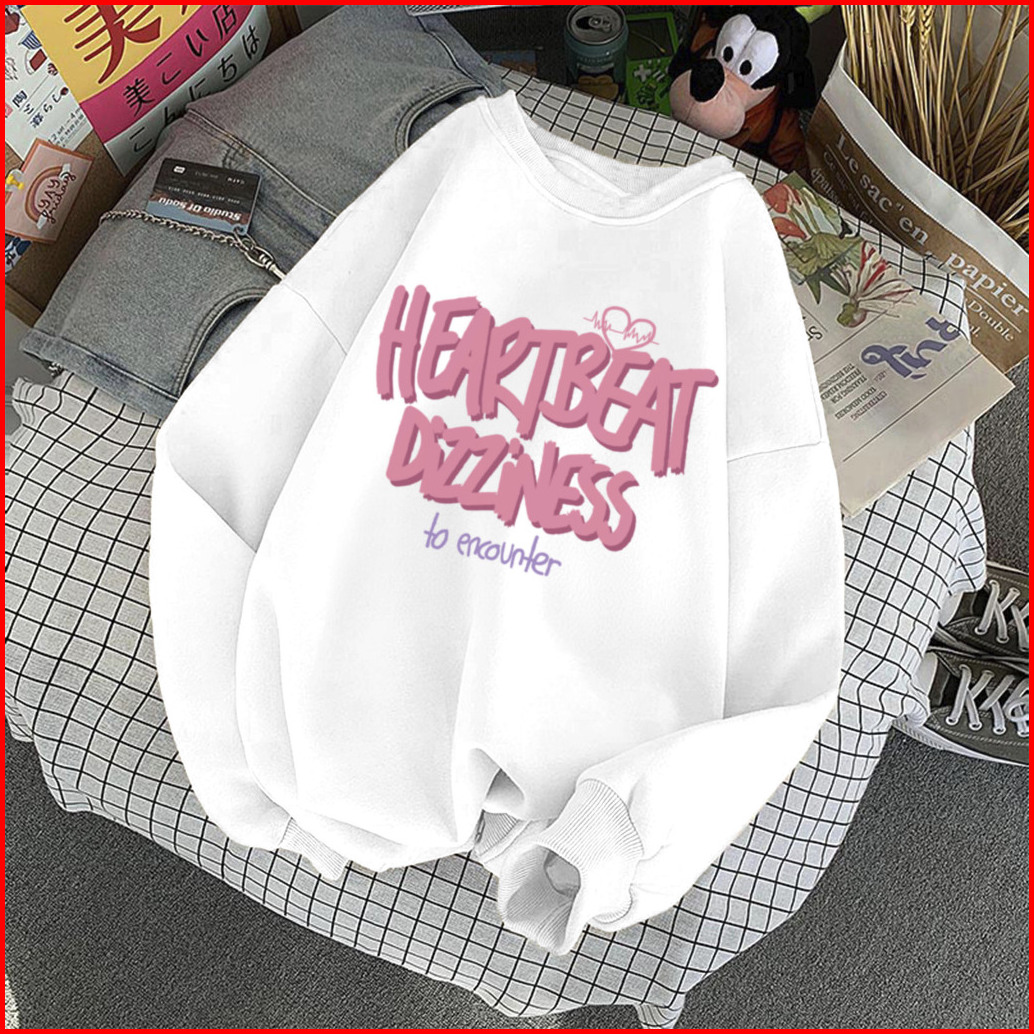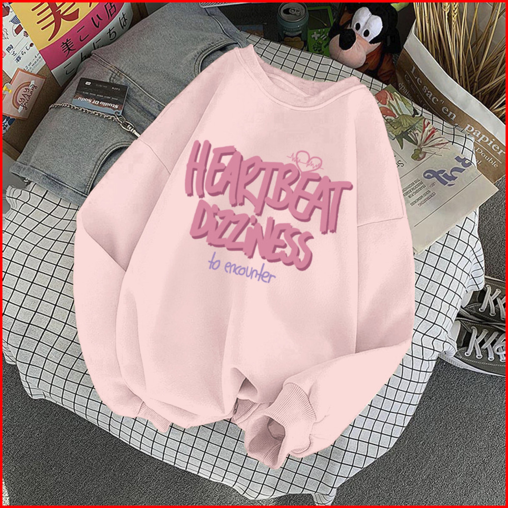 Sweater Lengan Panjang Oversized Heart Beat Love Street Style Korean Style Switer Wanita Oversize Sweatshirt Heribeit Di