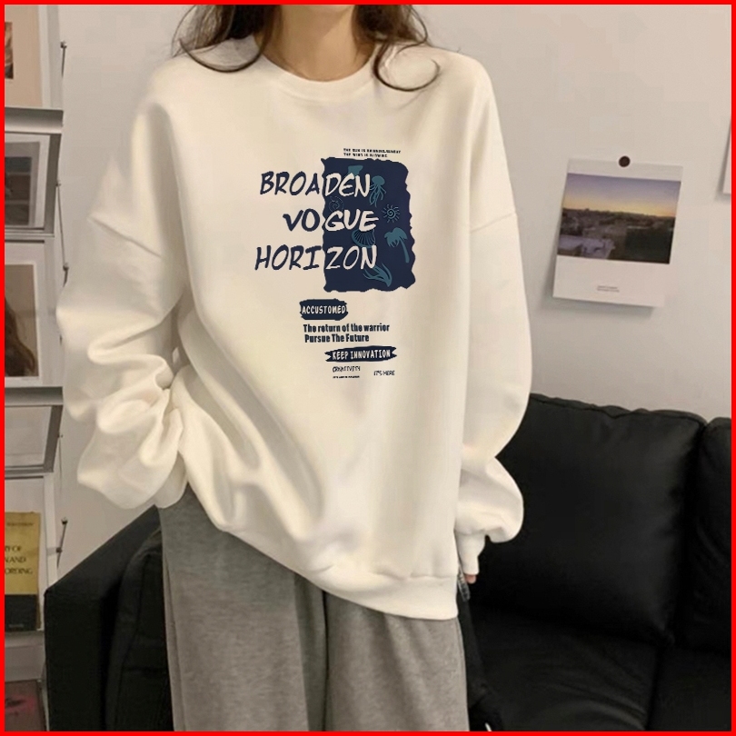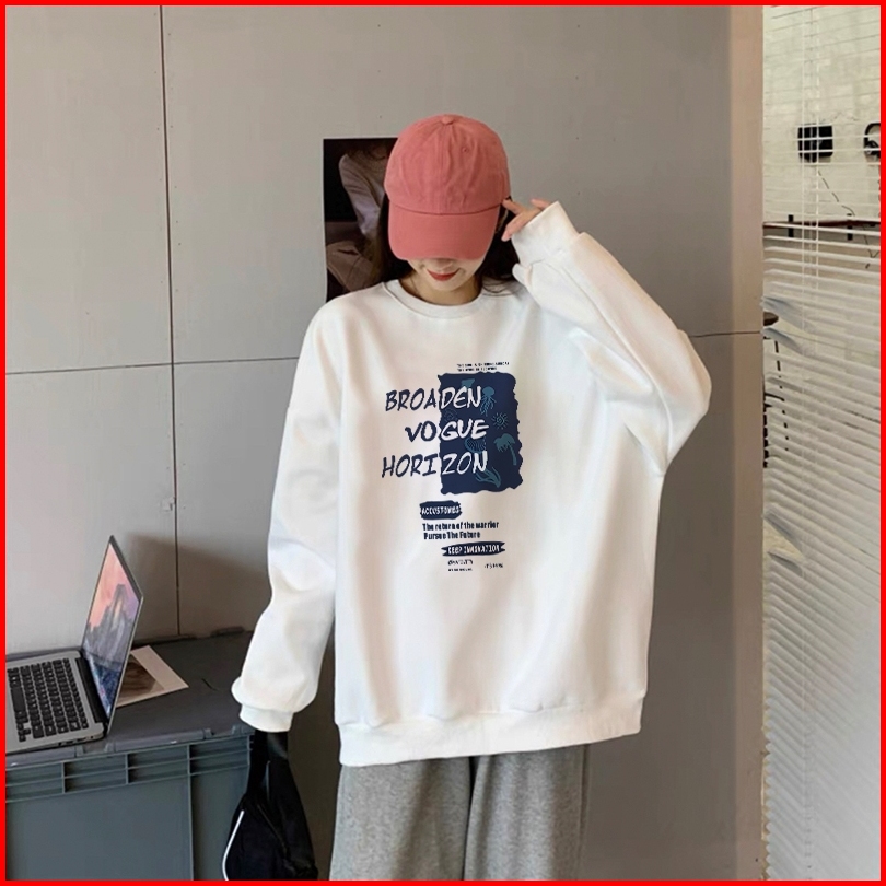 Forteid Sweater Lengan Panjang Oversized Sweater Wanita Premium Korean Switer Wanita Oversized Cetak Broaden Vogve Horiz