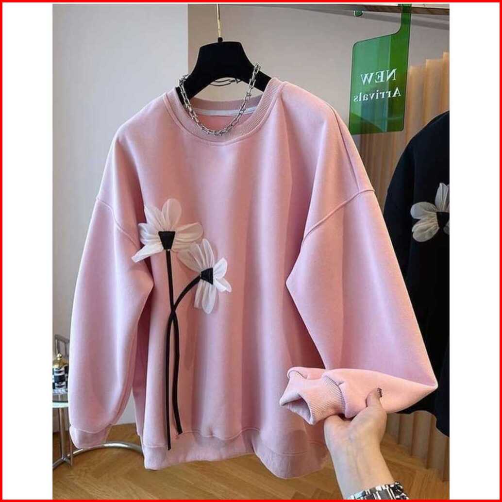 Cemprus.id - Sweater Wanita Oversize - Flora Sweater Motif Bunga Korean Style Kekinian
