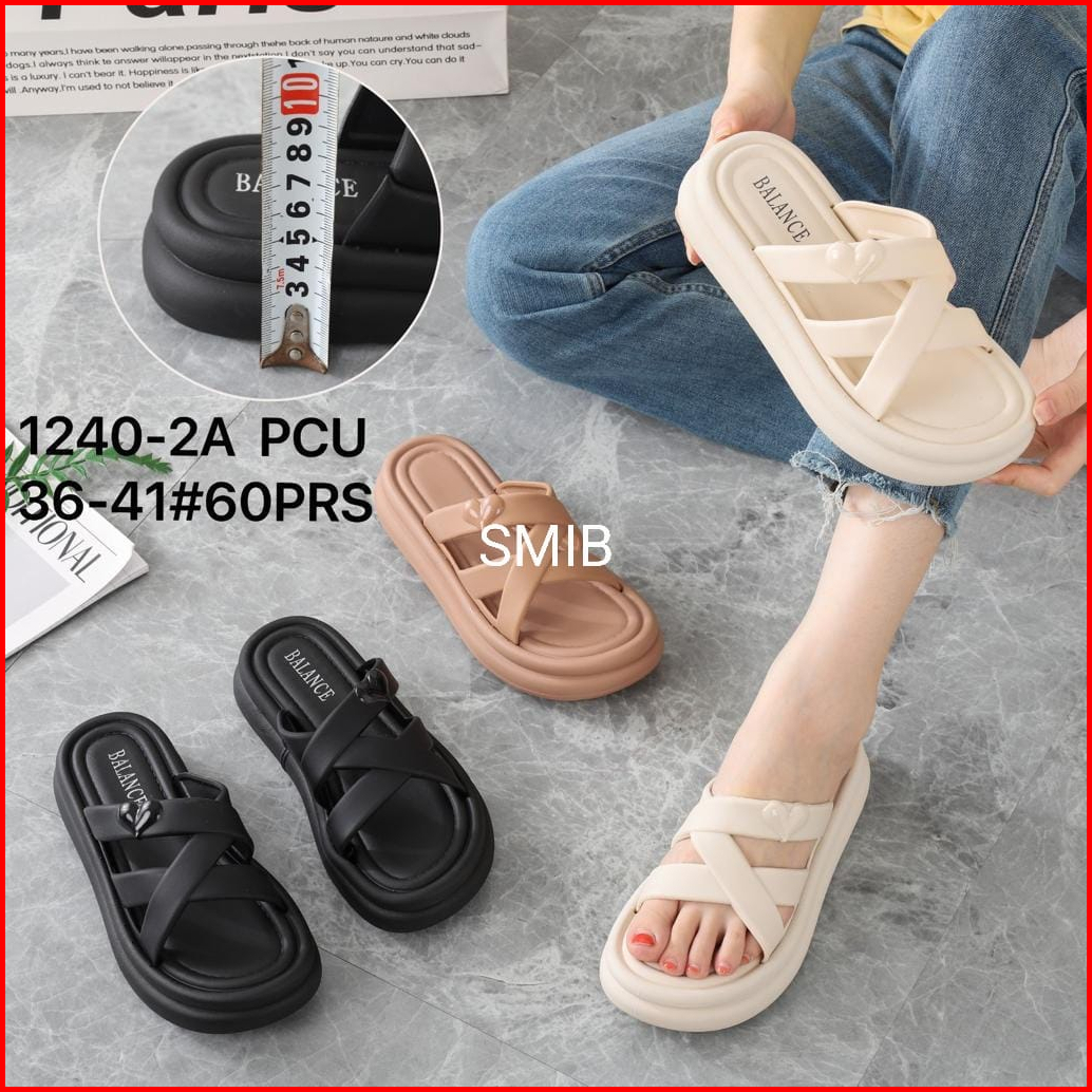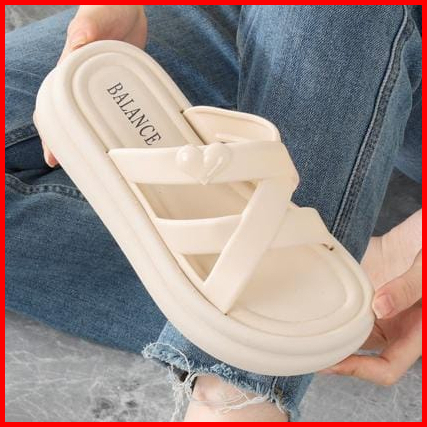 Sandal Selop Wanita Karet Import Balance Motif Silang Sol Tebal 5cm 1240-2a