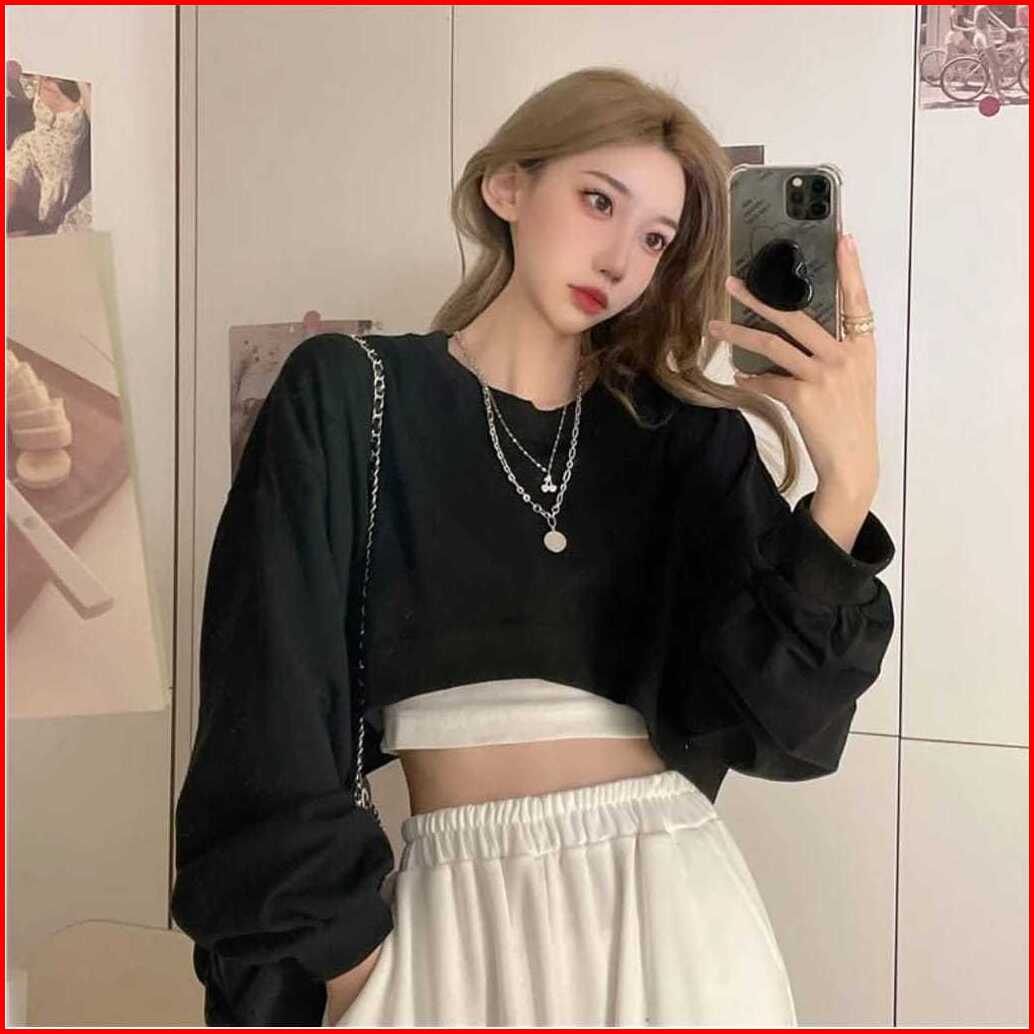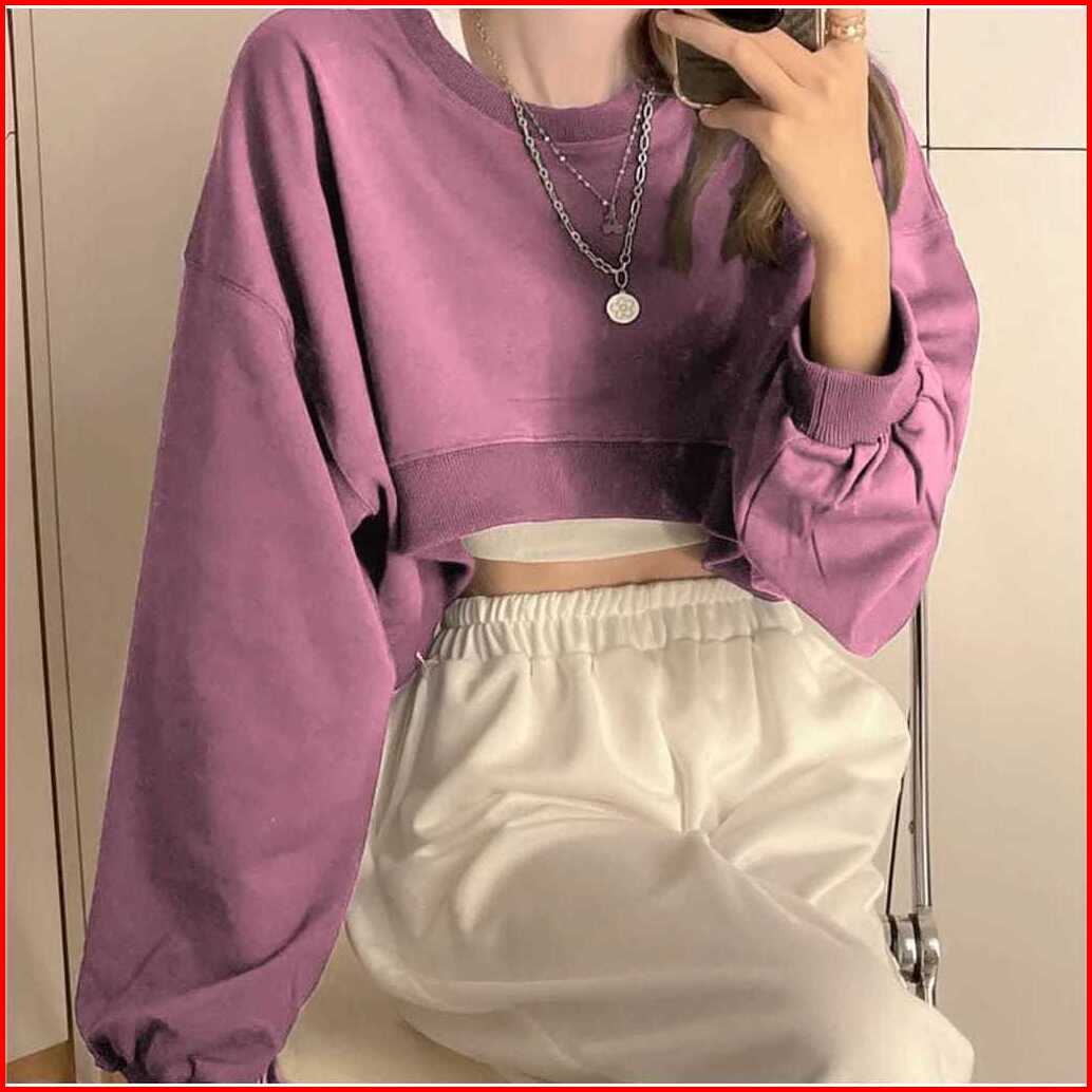 Extra Croope Oversize Sweater Oversize Crop Wanita Korean Style Kekinian
