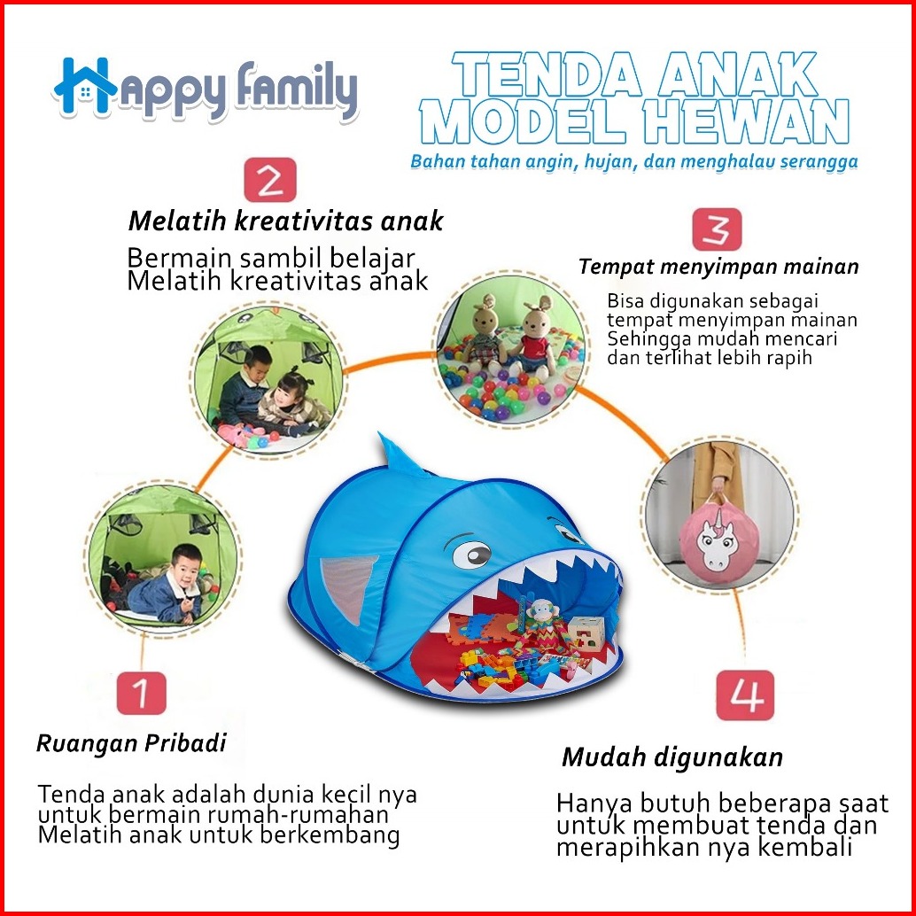 Hf Lokal Tenda Anak Karakter Hewan Otomatis Lipat Free Tas Tenda Camping Anak Murah Premium