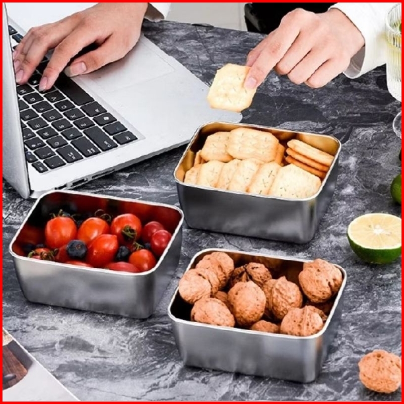Food Box Sus 304 Isi 5pcs Tutup Plastik Kapasitas Kecil Anti Karat Wadah Makanan Multifungsi Stainless Steel Serbaguna F