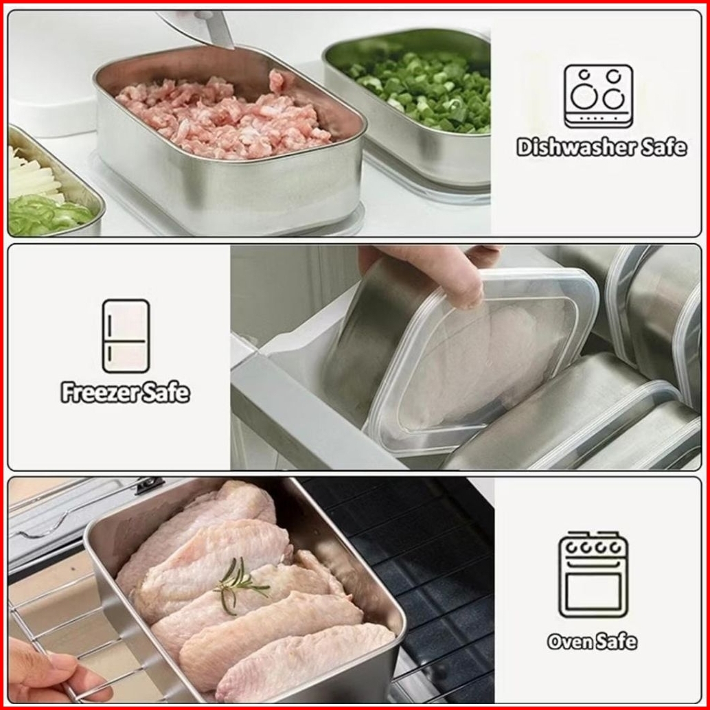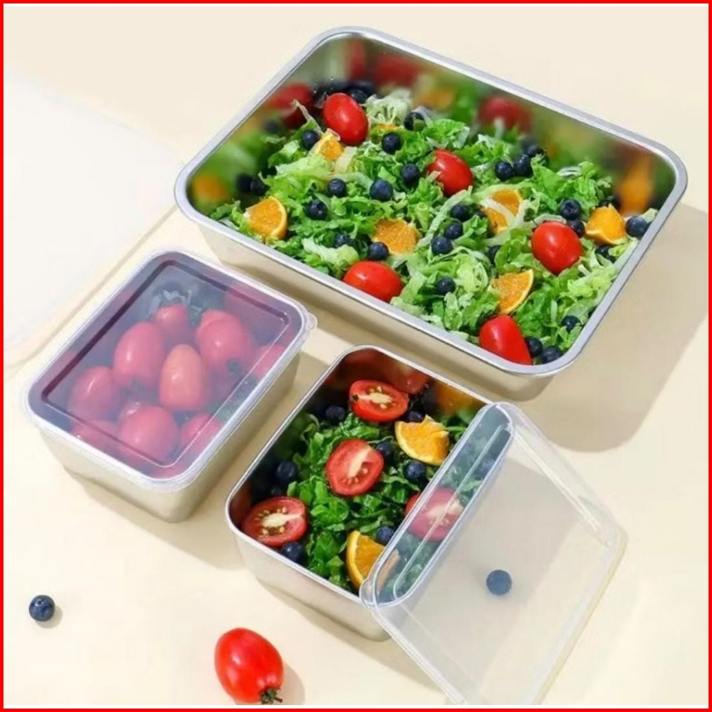 Food Container Stainless Wadah Kotak Stainless Sus 304 Serbaguna Wadah Makanan Wadah Buah Dan Sayur Food Box Container F