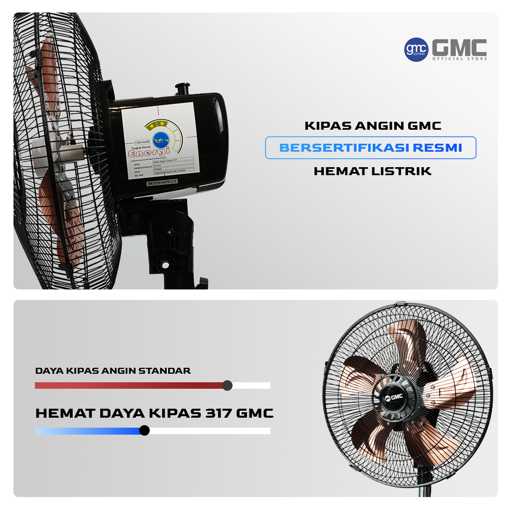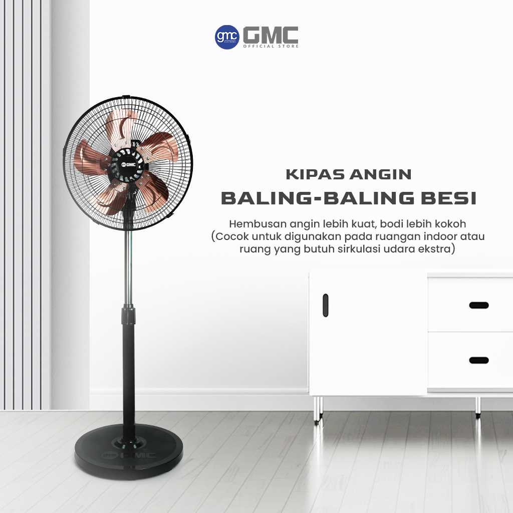 GMC Kipas Angin 317 – Seri Besi – Kipas Lantai 14", 55W, 5 Baling-Baling Besi, Desain Kokoh