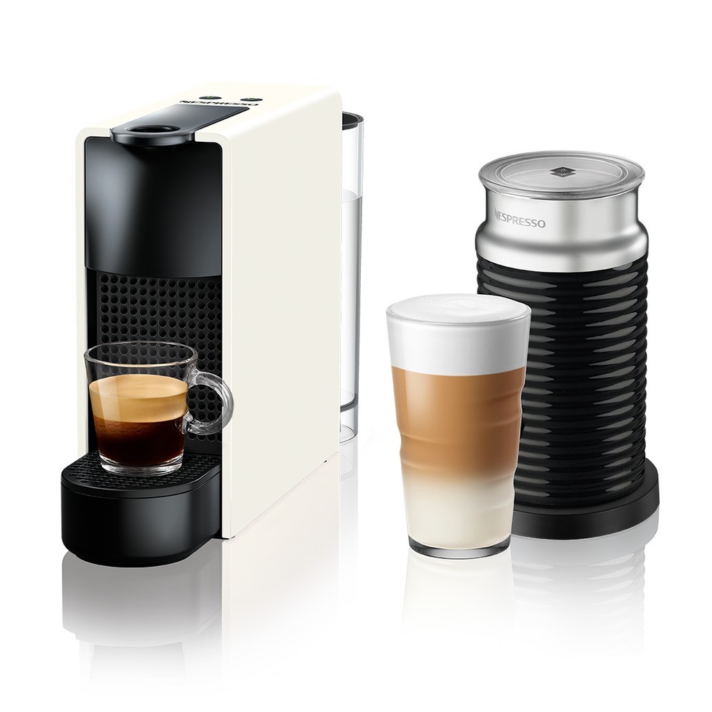 NESPRESSO Essenza Mini Coffee Machine White, with Aeroccino3 Black