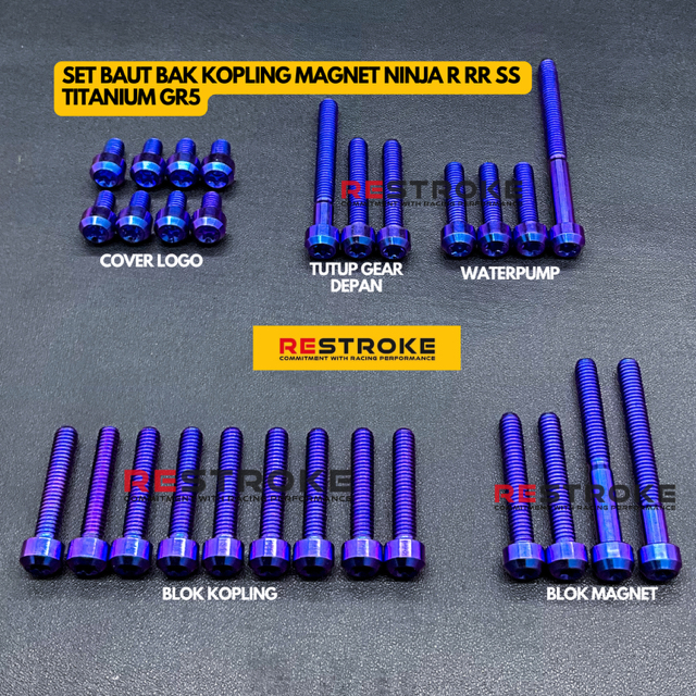 SET BAUT MESIN KALTER BAK KOPLING MAGNET NINJA R SS RR TITANIUM GR5 ORIGINAL PTITANIUM VIETNAM