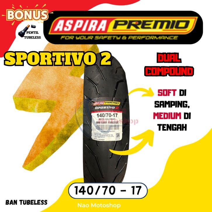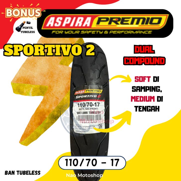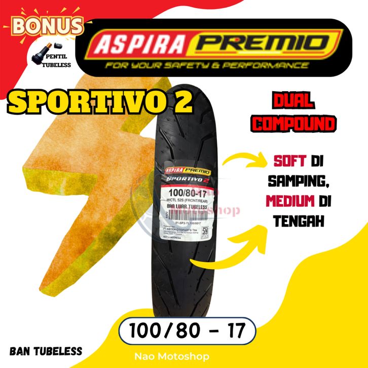 BAN ASPIRA PREMIO SPORTIVO 2 TUBELESS MATIC RING 17 90/80 100/80 110/70 120/70 17