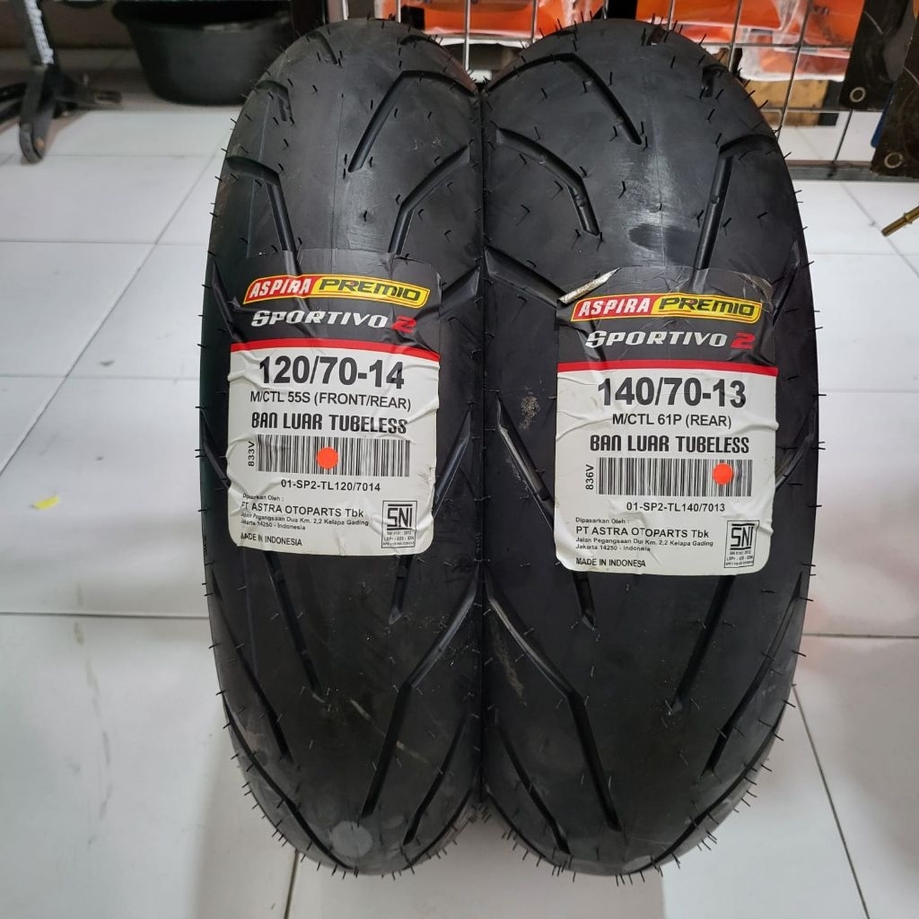 Paket Ban Motor Sepasang Aspira Premio Sportivo 2 Honda PCX 160 Adv 160 Depan Belakang 120/70 Ring 14 dan 140/70 13 Upgrade Depan belakang