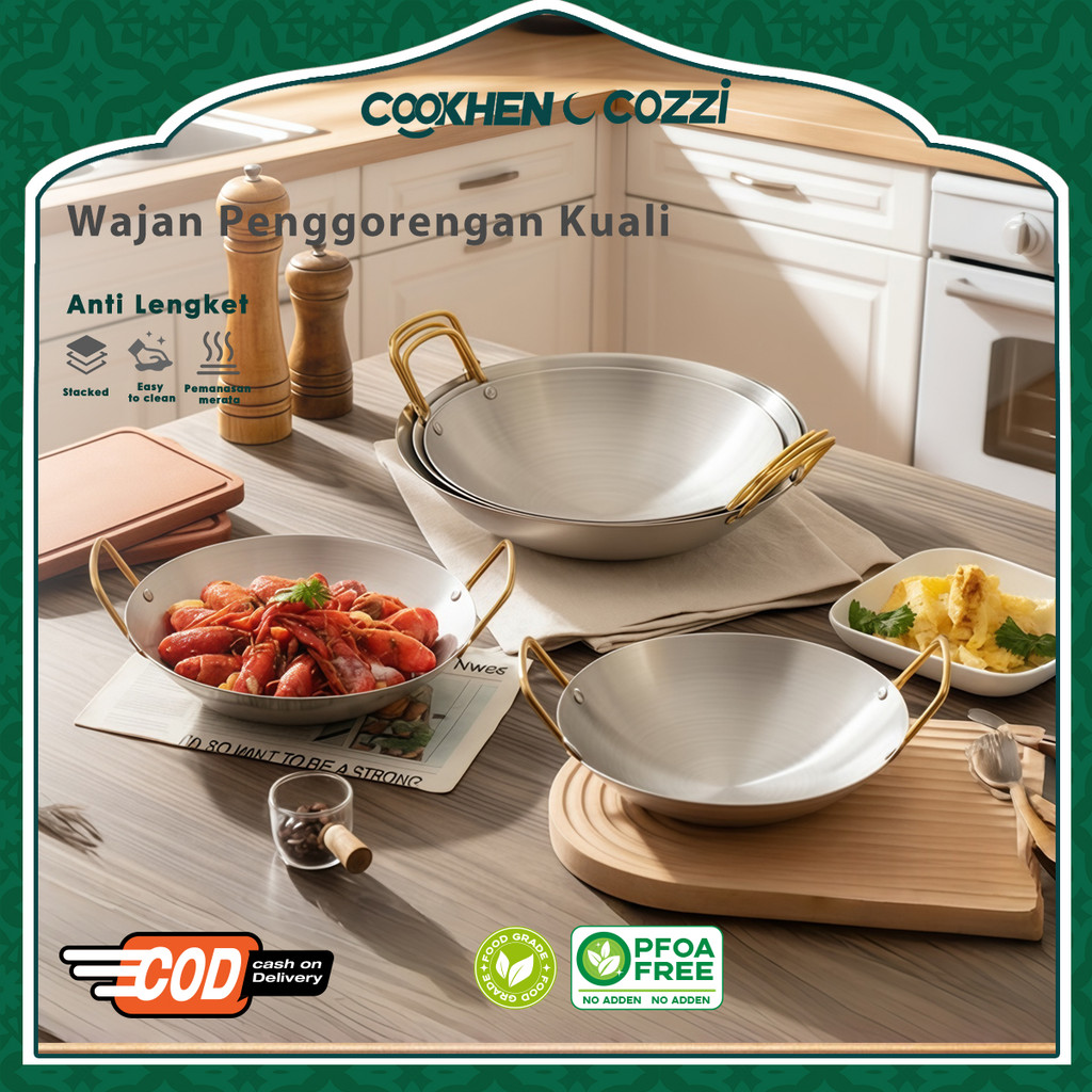 Cookhen Wajan Penggorengan Kuali Stainless Steel Gagang Kuping 24cm 32cm 40cm | Tahan Karat Anti Lengket Tekstur Halus Mudah Dibersihkan | Panci Kecil Dua Pegangan Rumahan