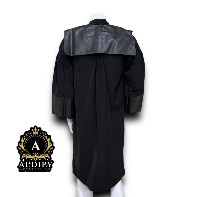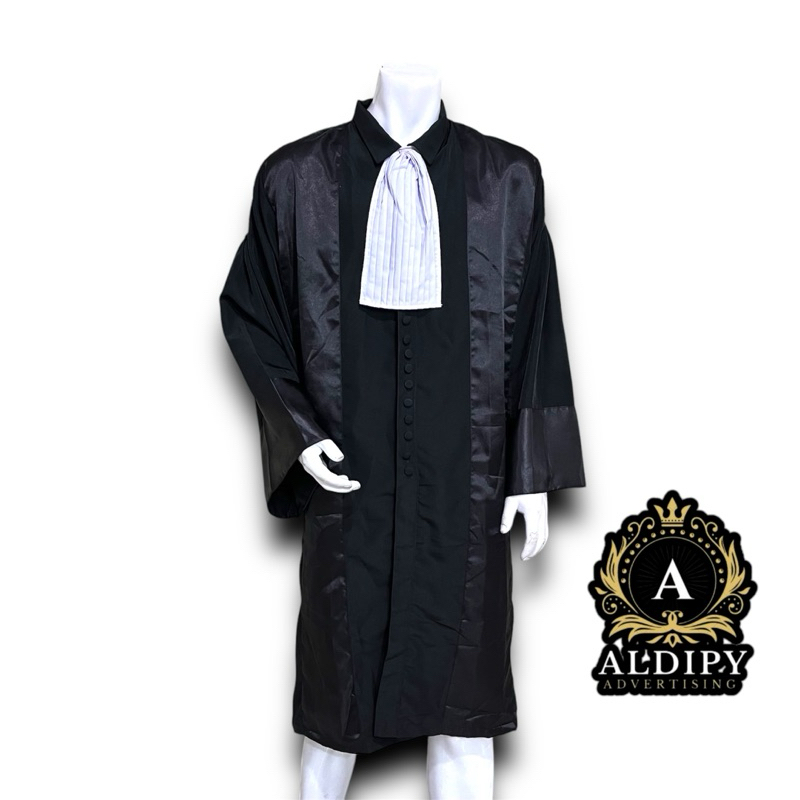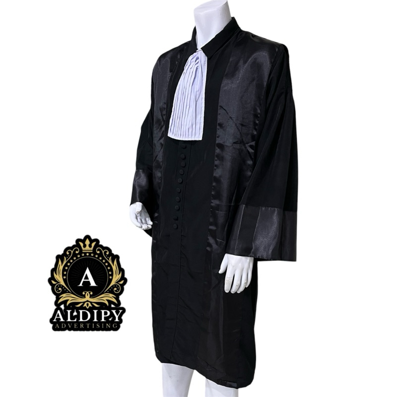 Baju Toga Advokat Pengecara Jaksa Bahan Jet Black Kerah Kemeja + Dasi Toga dan Papan Nama Stok