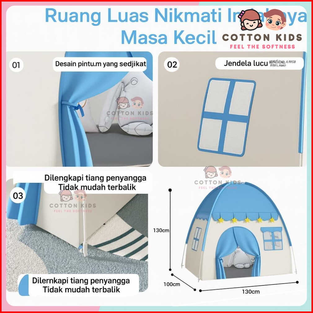 Cotton Kids Tenda Mainan Anak Perempuan Lipat Portable Karakter Lucu Tenda Mainan Anak Laki Laki